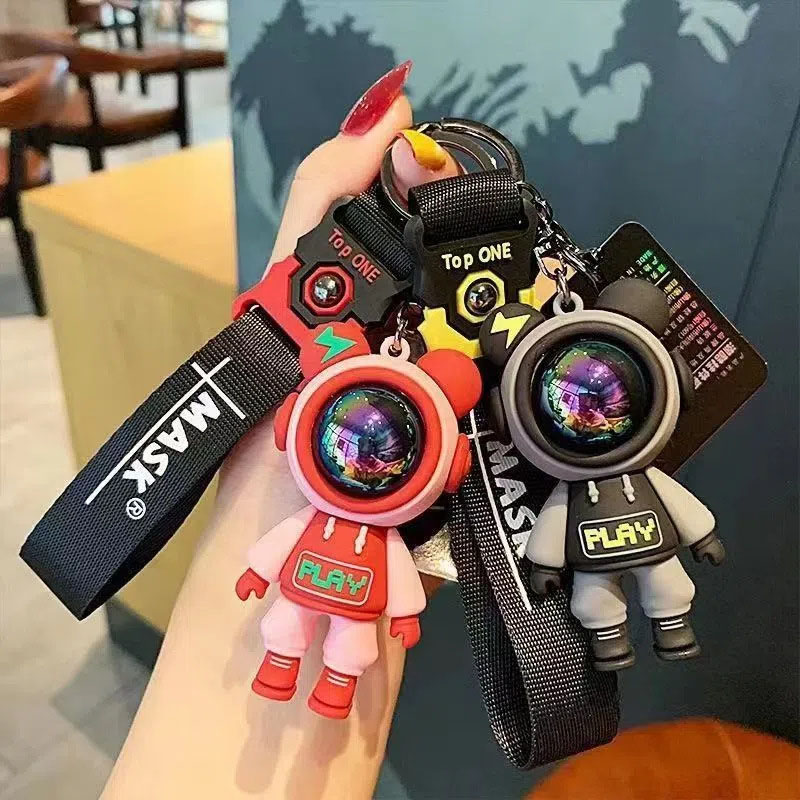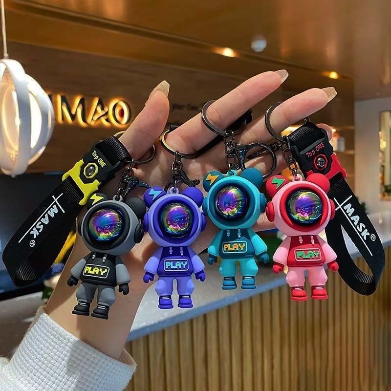 Keychain New Designed Anime Cartoon Keychain Graffiti Gradient Electroplating Bear Car Keyring