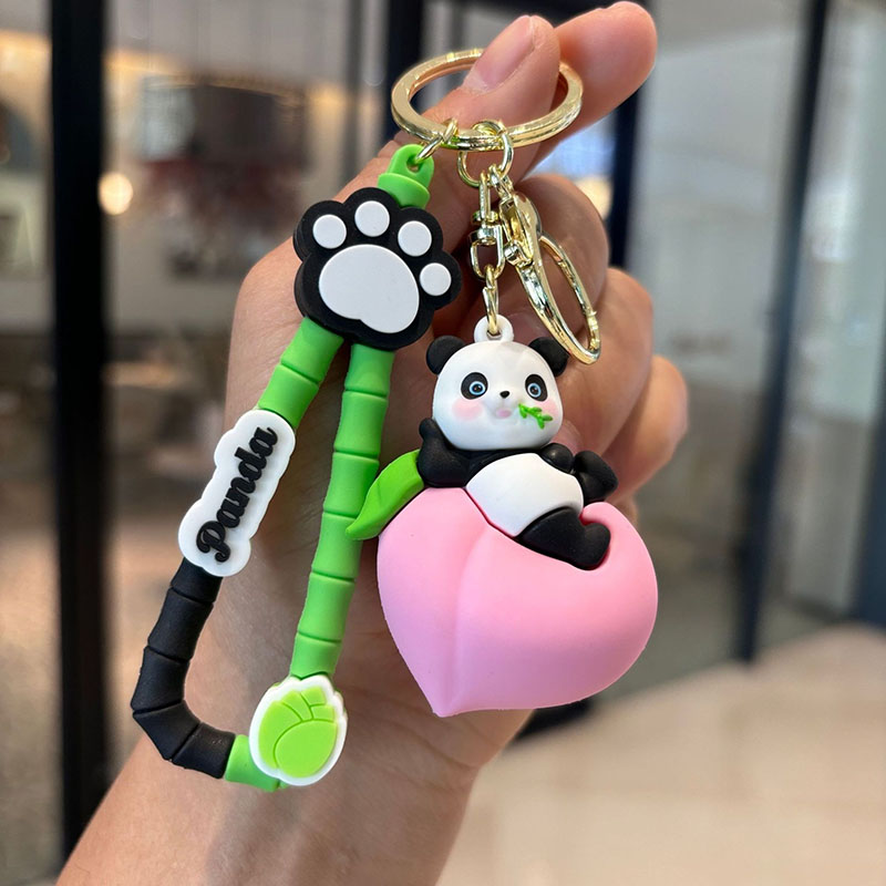 3D PVC Plastic Kids Cute Cartoon Designer Car Key Chain Ring Toy Keyring Wood Caving Cat Keychain