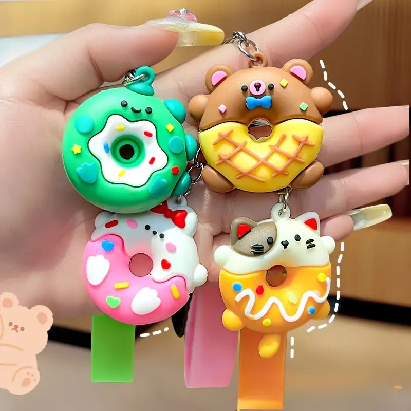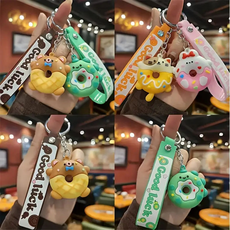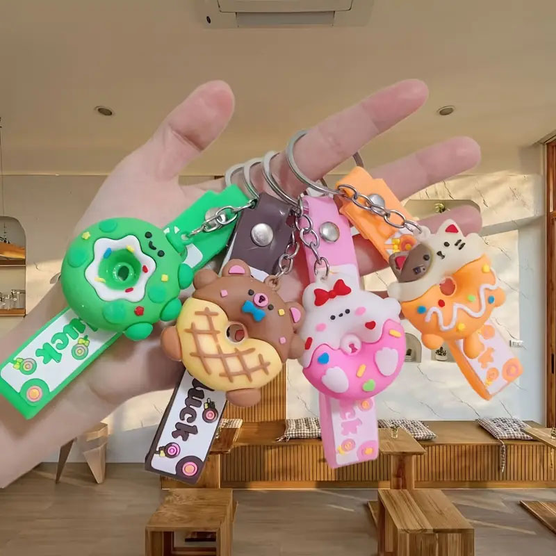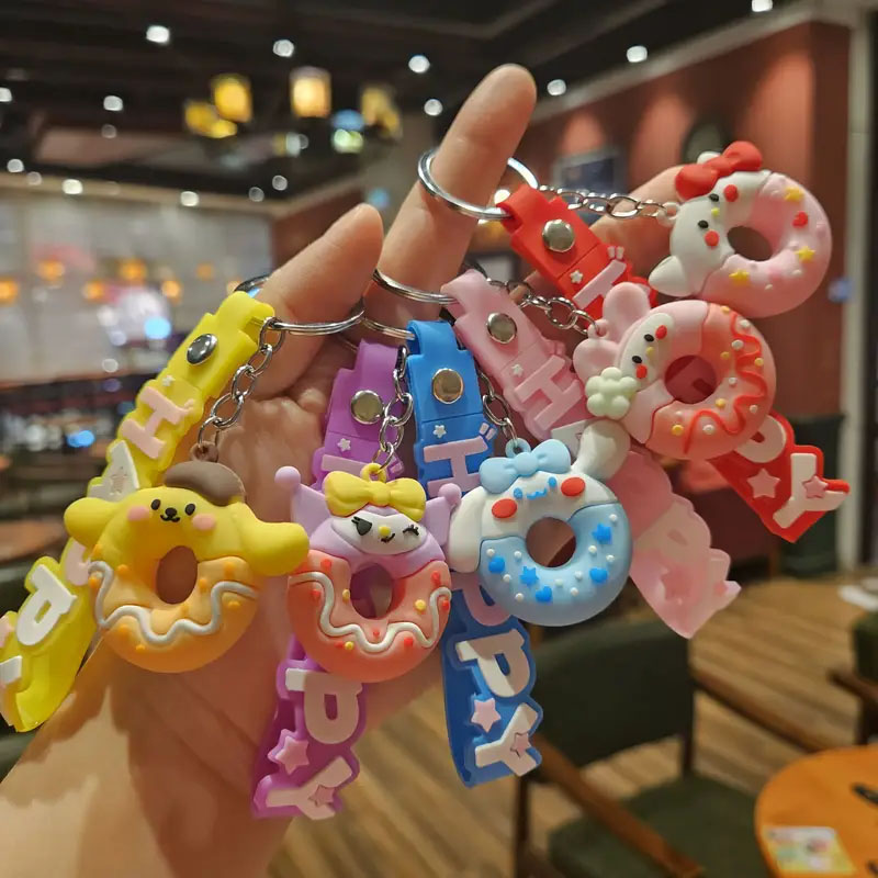 Keychain New Designed Anime Cartoon Keychain Graffiti Gradient Electroplating Bear Car Keyring