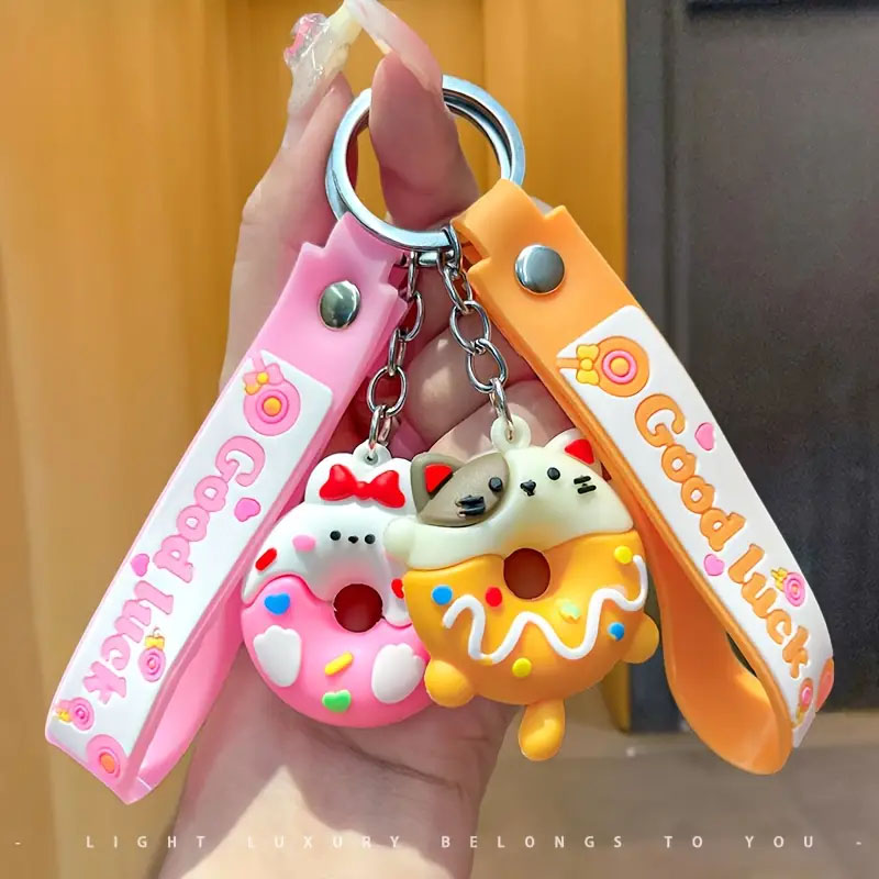 3D PVC Plastic Kids Cute Cartoon Designer Car Key Chain Ring Toy Keyring Wood Caving Cat Keychain