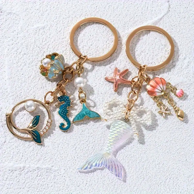 3D Cartoon Doll Keychain Metal Key Chain Shiny and Sparkling Keychains with Rhinestones
