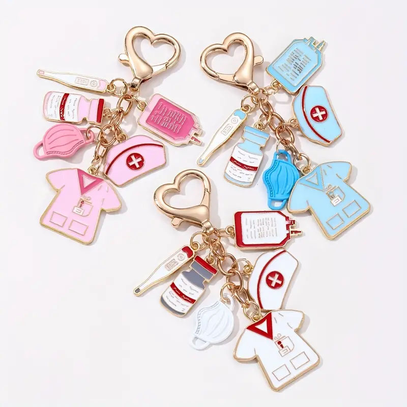 3D Cartoon Doll Keychain Metal Key Chain Shiny and Sparkling Keychains with Rhinestones