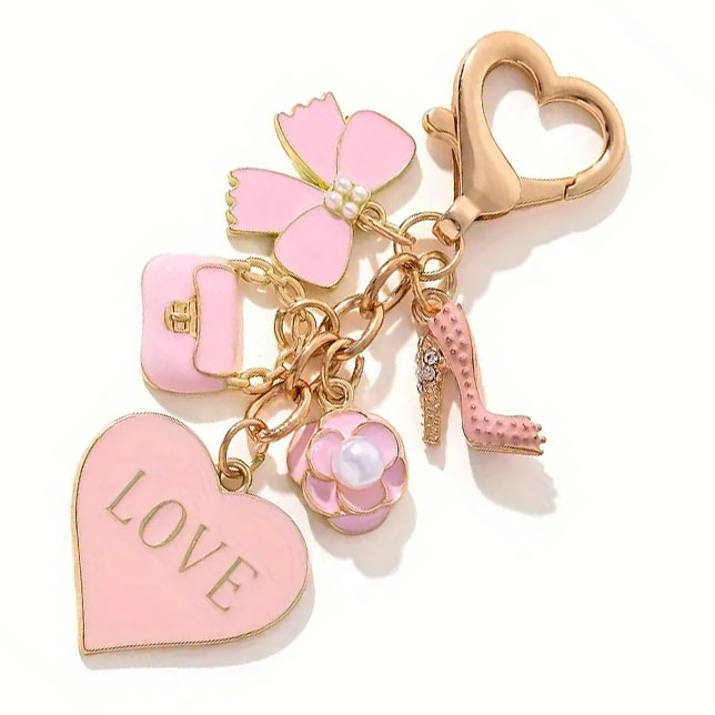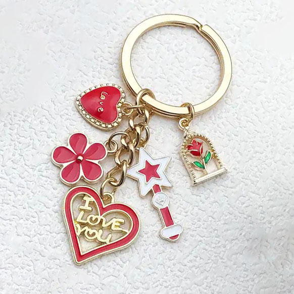 3D Cartoon Doll Keychain Metal Key Chain Shiny and Sparkling Keychains with Rhinestones