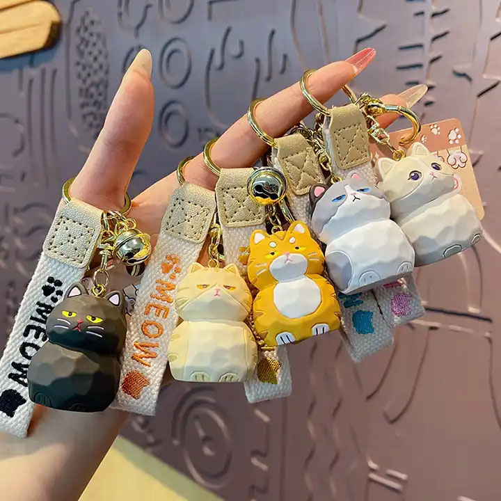 3D PVC Plastic Kids Cute Cartoon Designer Car Key Chain Ring Toy Keyring Wood Caving Cat Keychain