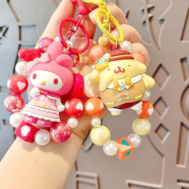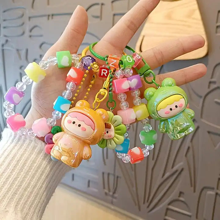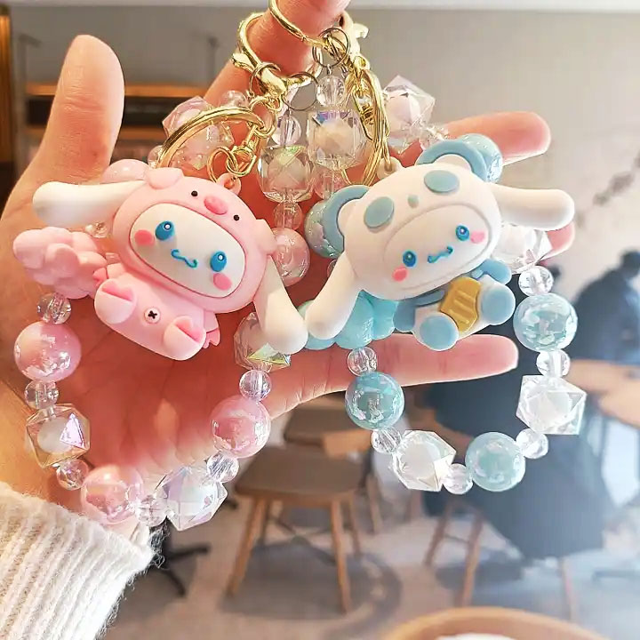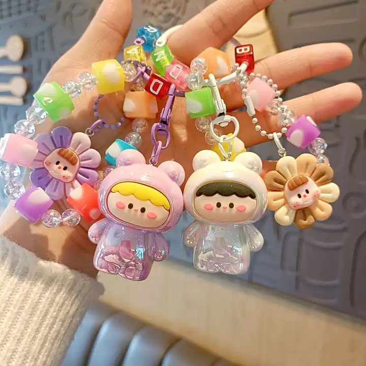 3D Cartoon Doll Keychain Metal Key Chain Shiny and Sparkling Keychains with Rhinestones
