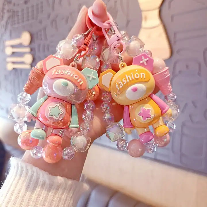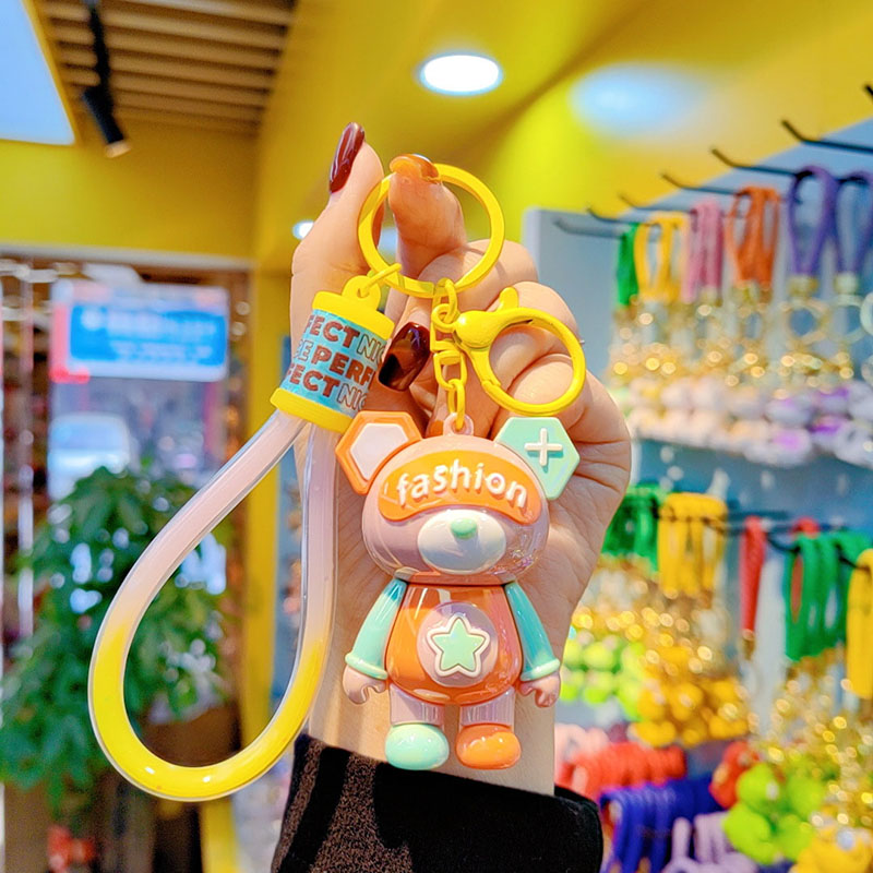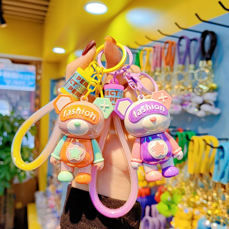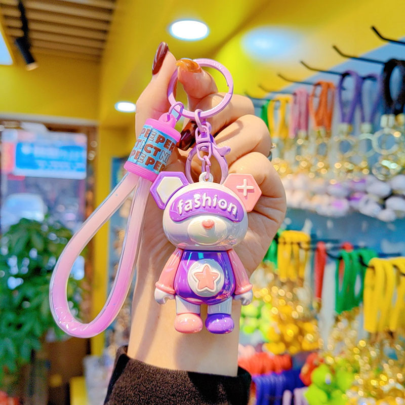 Keychain New Designed Anime Cartoon Keychain Graffiti Gradient Electroplating Bear Car Keyring