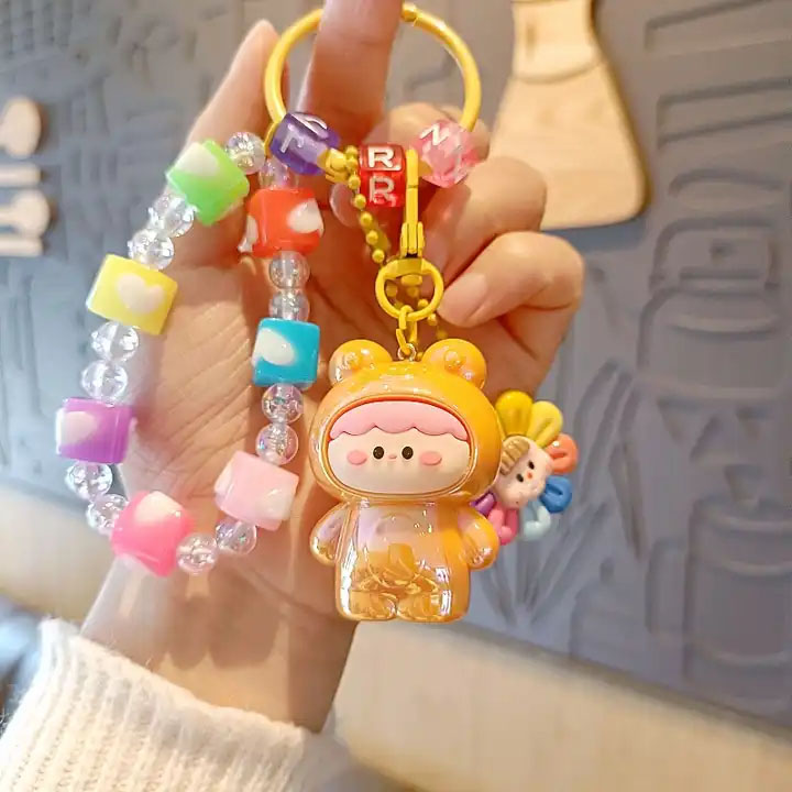 Colorful Resin Graffiti Bear Keychain Bag Pendant Decoration Doll Key Rings Small Gifts Key Chains Teddy Bear Keychain
