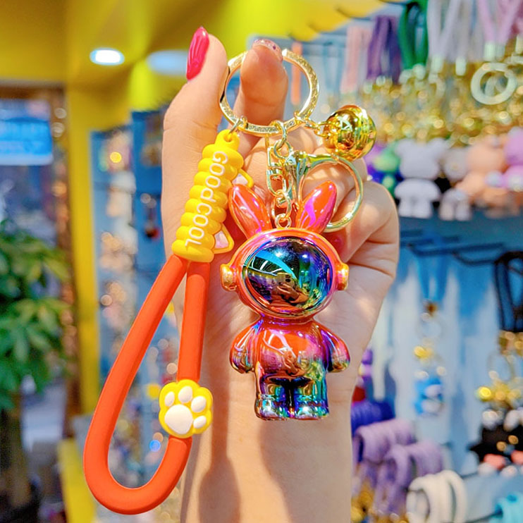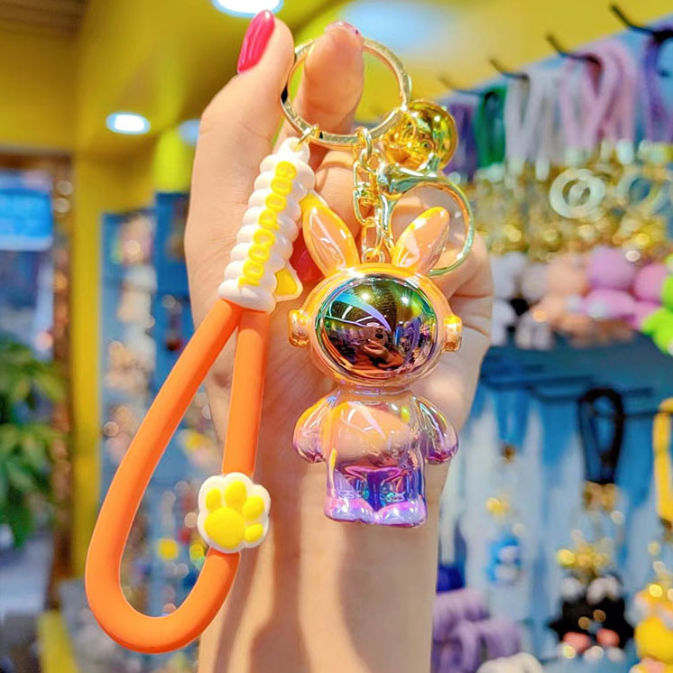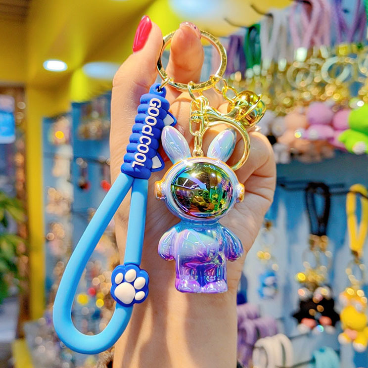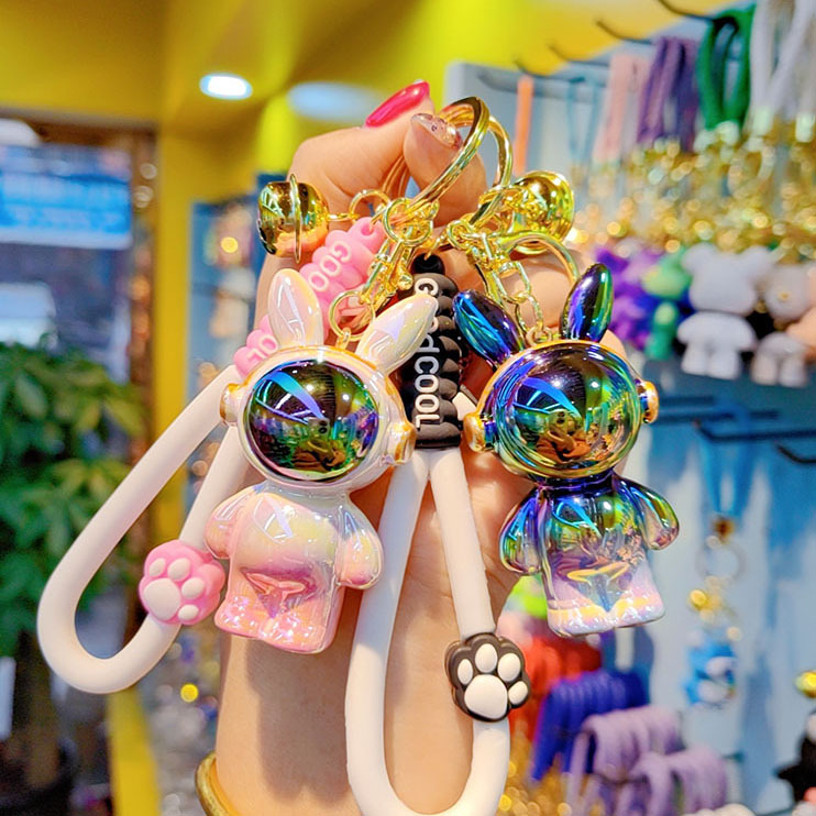 Cartoon Electroplated Iridescent Headphone Space Rabbit Key Chain Baby Accessory Pendant Headphone Backpack Rabbit Charm
