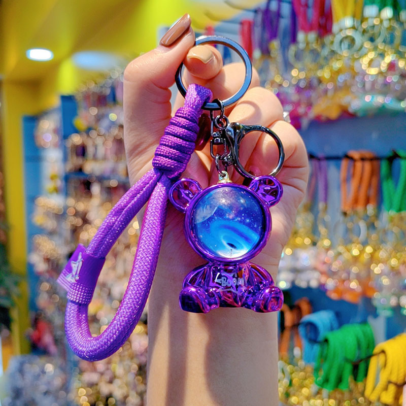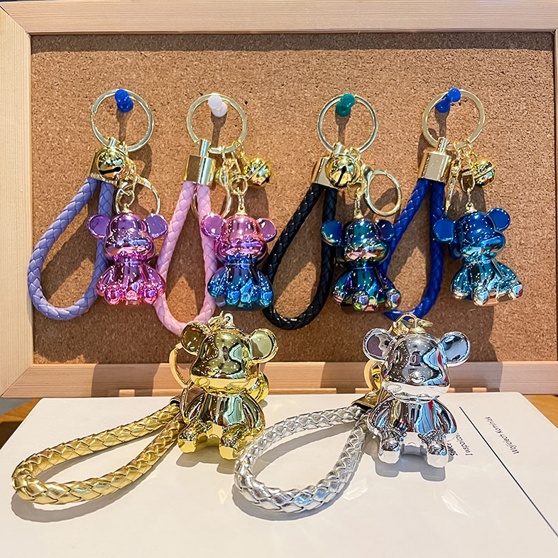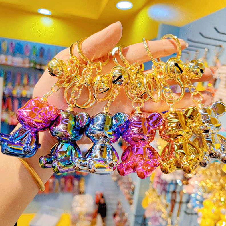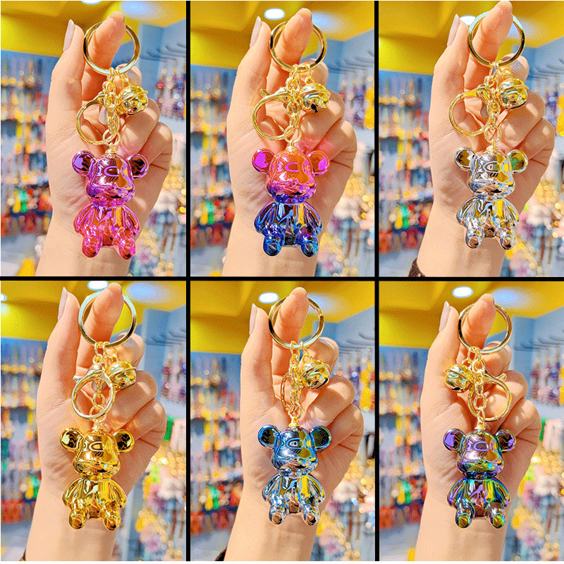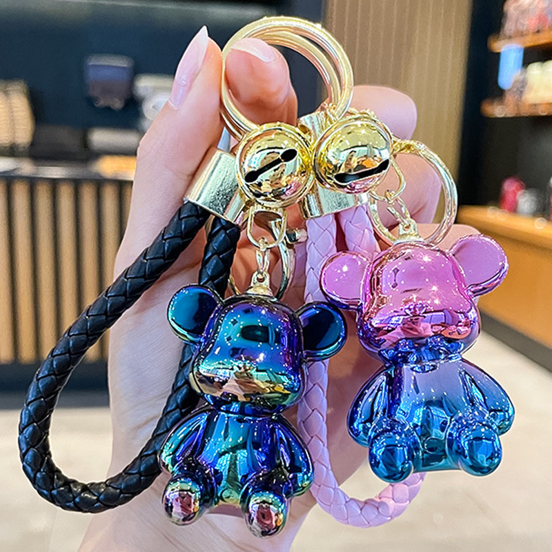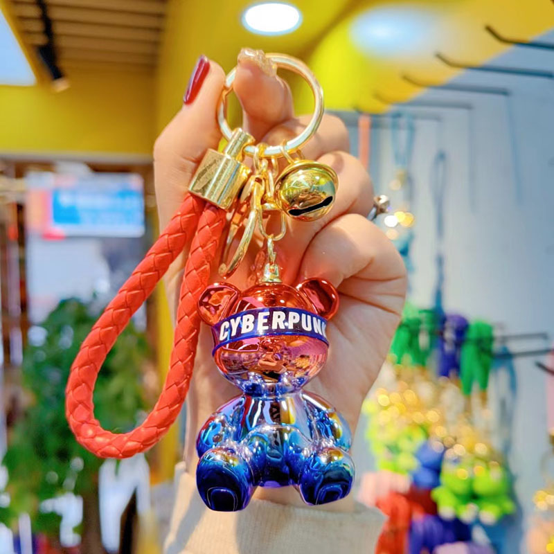 Keychain New Designed Anime Cartoon Keychain Graffiti Gradient Electroplating Bear Car Keyring