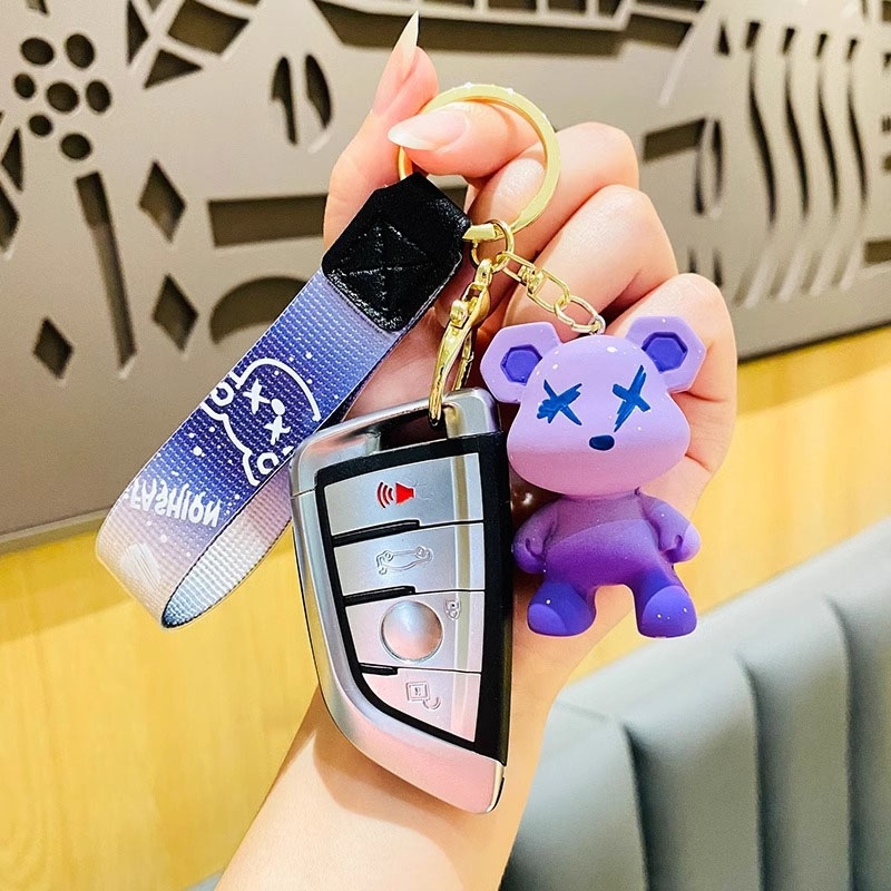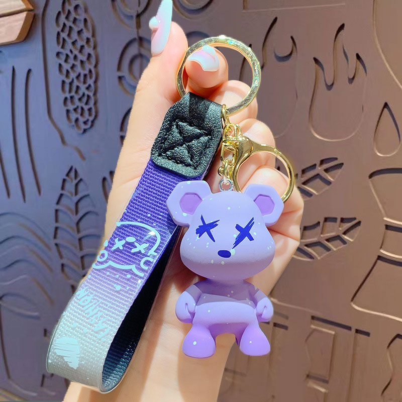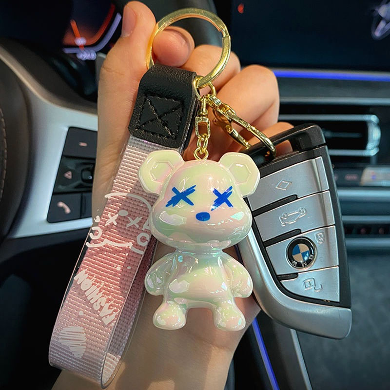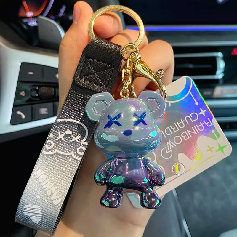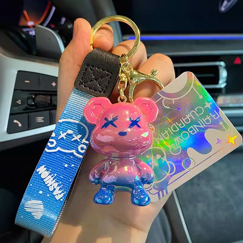 Keychain New Designed Anime Cartoon Keychain Graffiti Gradient Electroplating Bear Car Keyring