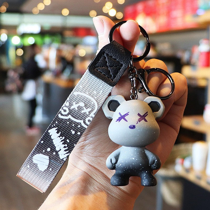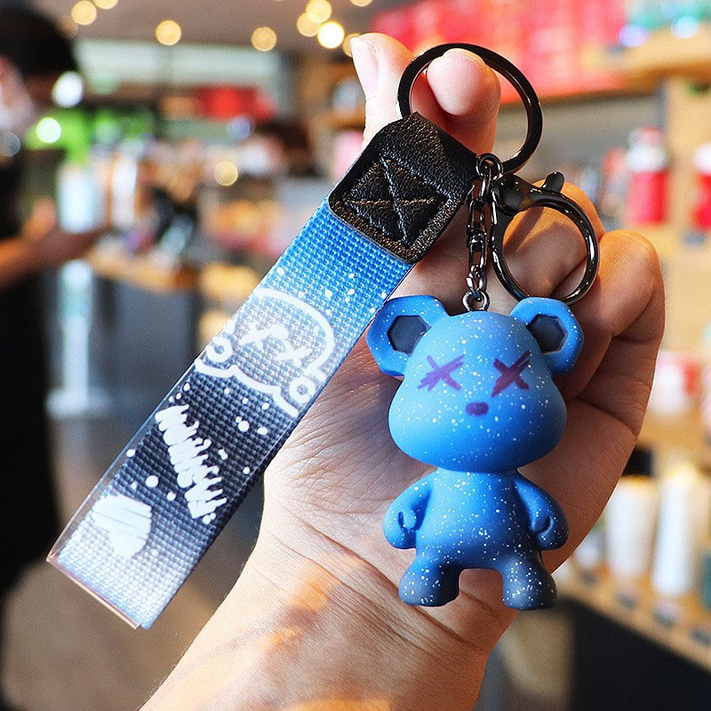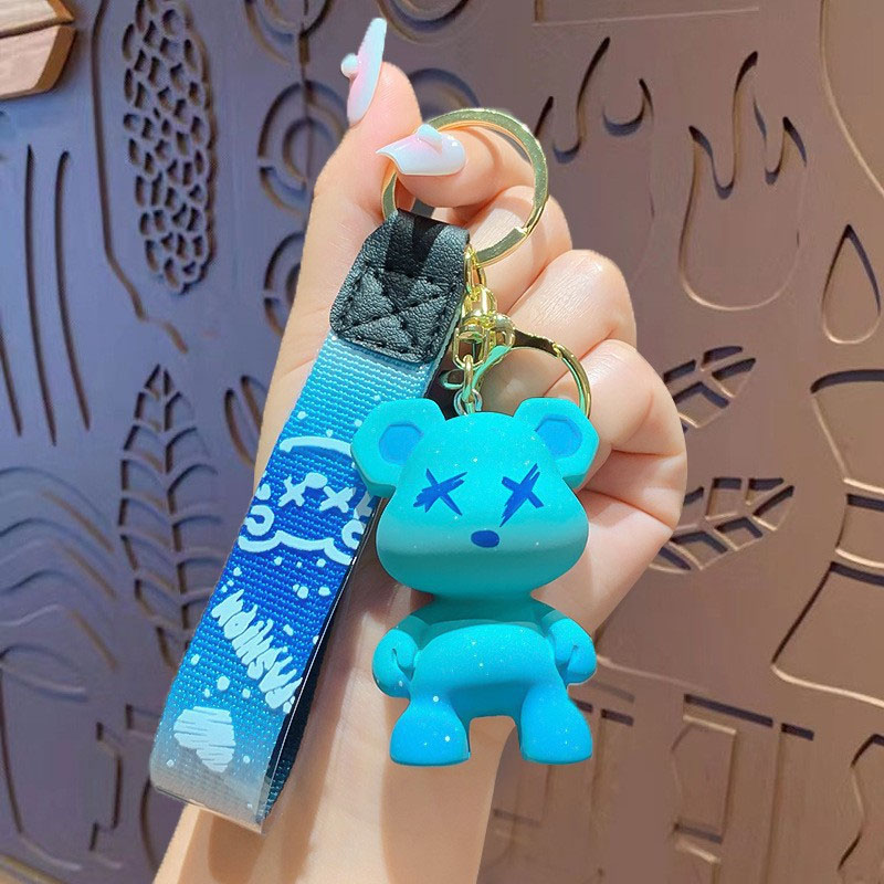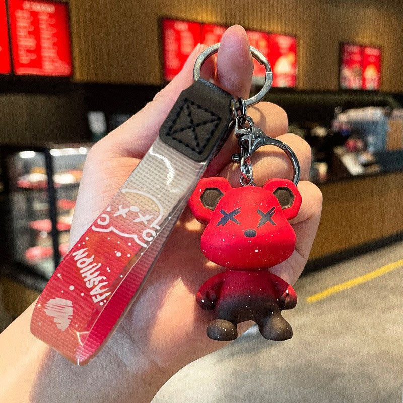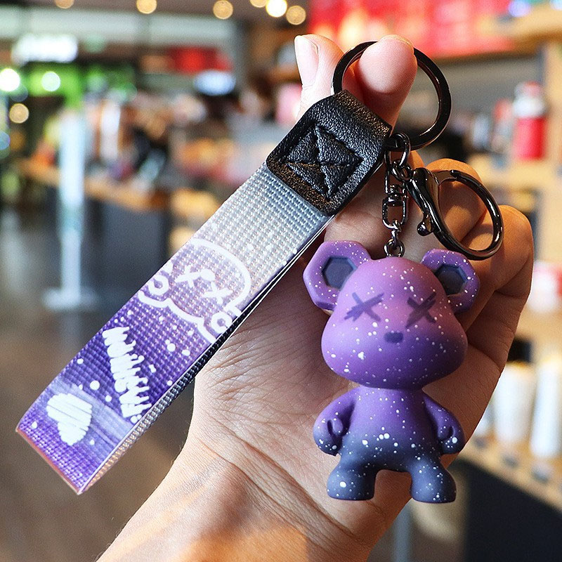 Keychain New Designed Anime Cartoon Keychain Graffiti Gradient Electroplating Bear Car Keyring