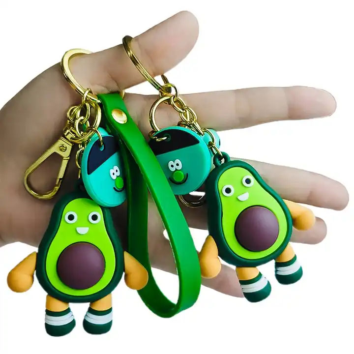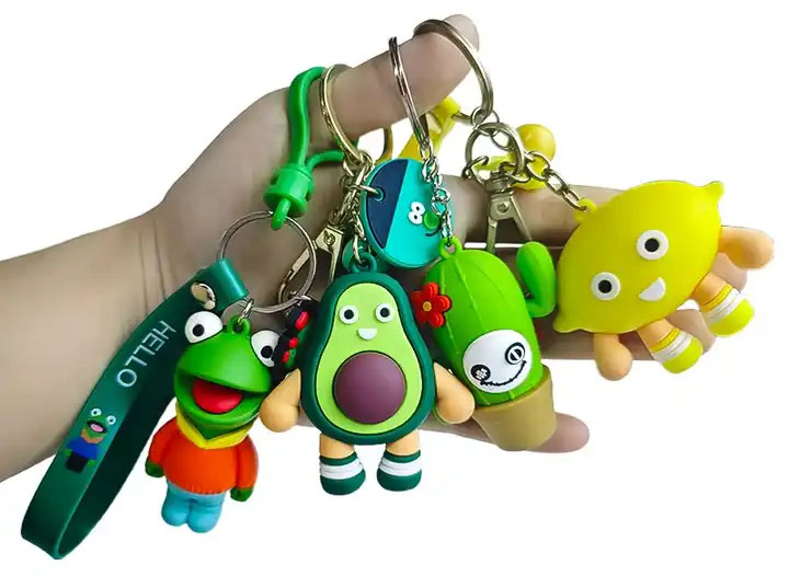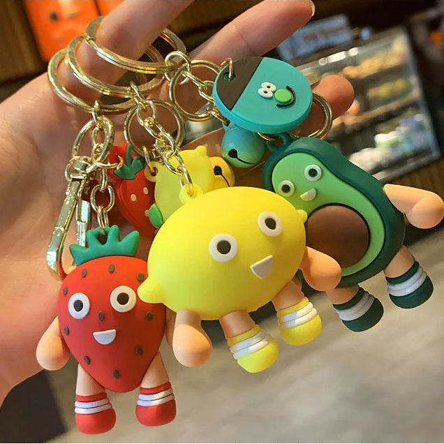 3D PVC Plastic Kids Cute Cartoon Designer Car Key Chain Ring Toy Keyring Wood Caving Cat Keychain