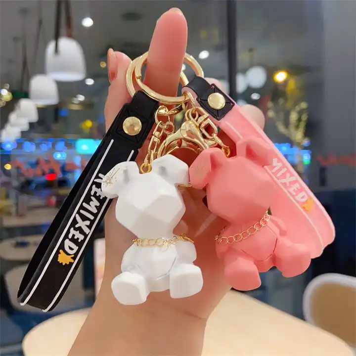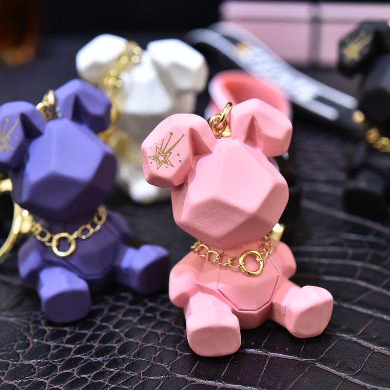 Cute Rabbit Animal Keychain Promotional Kawaii Resin Cartoon Plastic Geometric Rubber 3D Anime Rabbit Key Chains Car Bag Charms