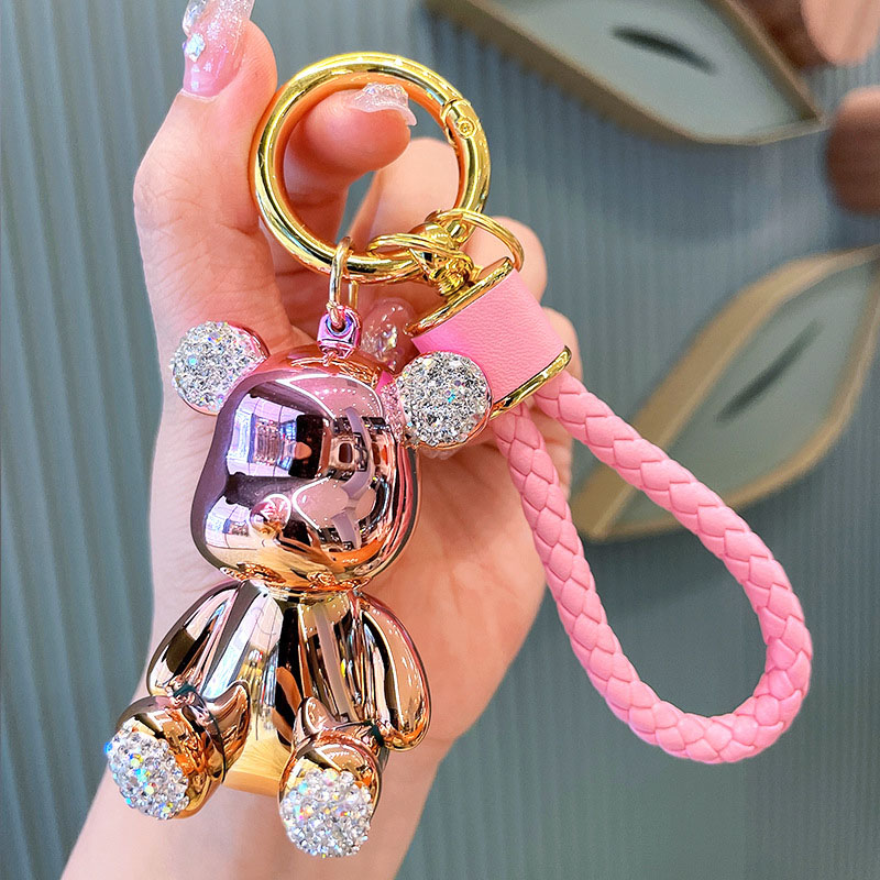 Exquisite Anti Loss Number Plate Bag Accessories Pendant Couple Car Key Metal Inlaid Diamond Bear Keychain