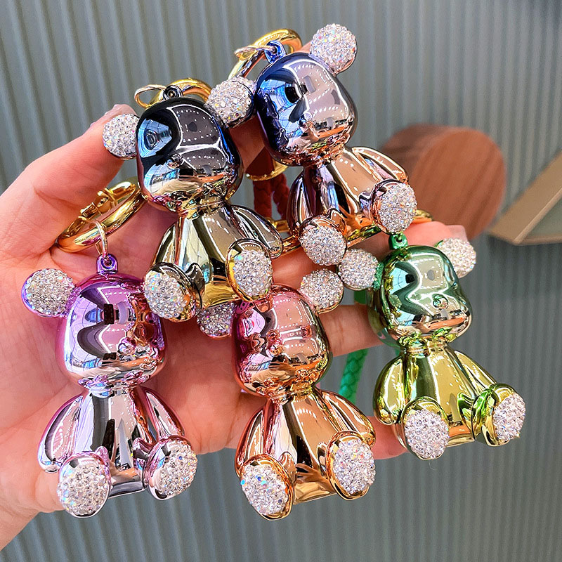 Keychain New Designed Anime Cartoon Keychain Graffiti Gradient Electroplating Bear Car Keyring