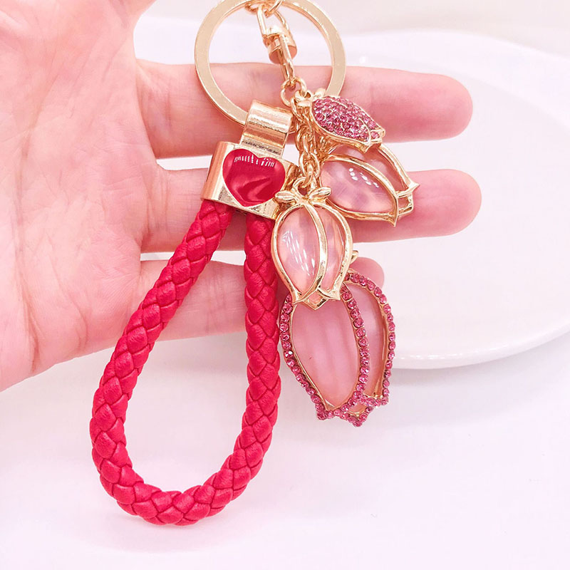 Candy Color Teddy Bear Keychain Rhinestone Bears Doll Key Chains Leather Wristlet Bag Pendant Cute Keychain