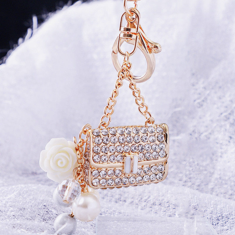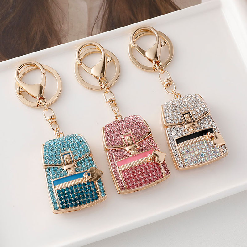 3D Cartoon Doll Keychain Metal Key Chain Shiny and Sparkling Keychains with Rhinestones
