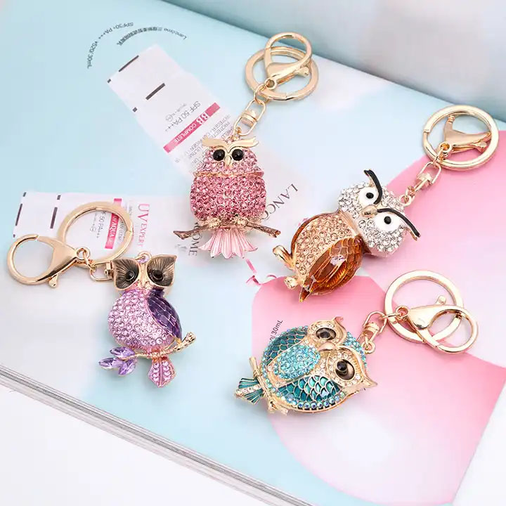3D Cartoon Doll Keychain Metal Key Chain Shiny and Sparkling Keychains with Rhinestones