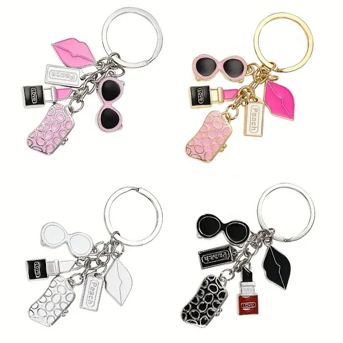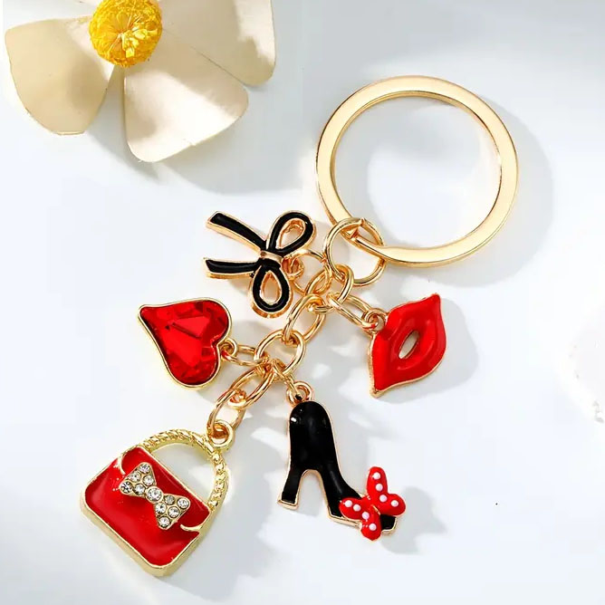 3D Cartoon Doll Keychain Metal Key Chain Shiny and Sparkling Keychains with Rhinestones