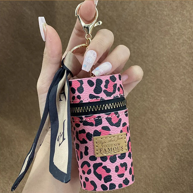 Candy Color Teddy Bear Keychain Rhinestone Bears Doll Key Chains Leather Wristlet Bag Pendant Cute Keychain