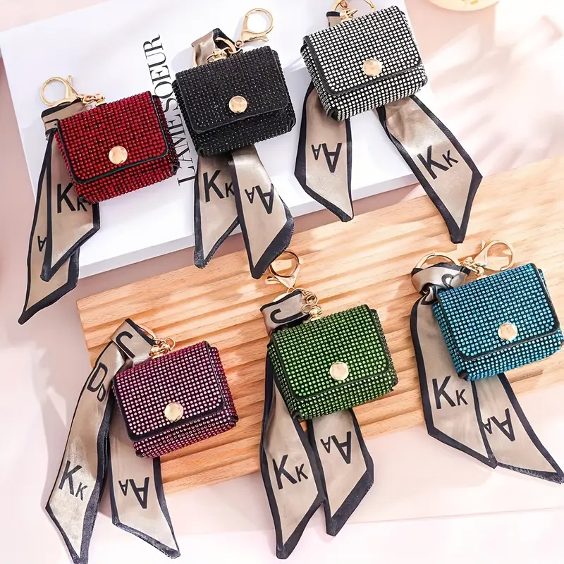 Candy Color Teddy Bear Keychain Rhinestone Bears Doll Key Chains Leather Wristlet Bag Pendant Cute Keychain