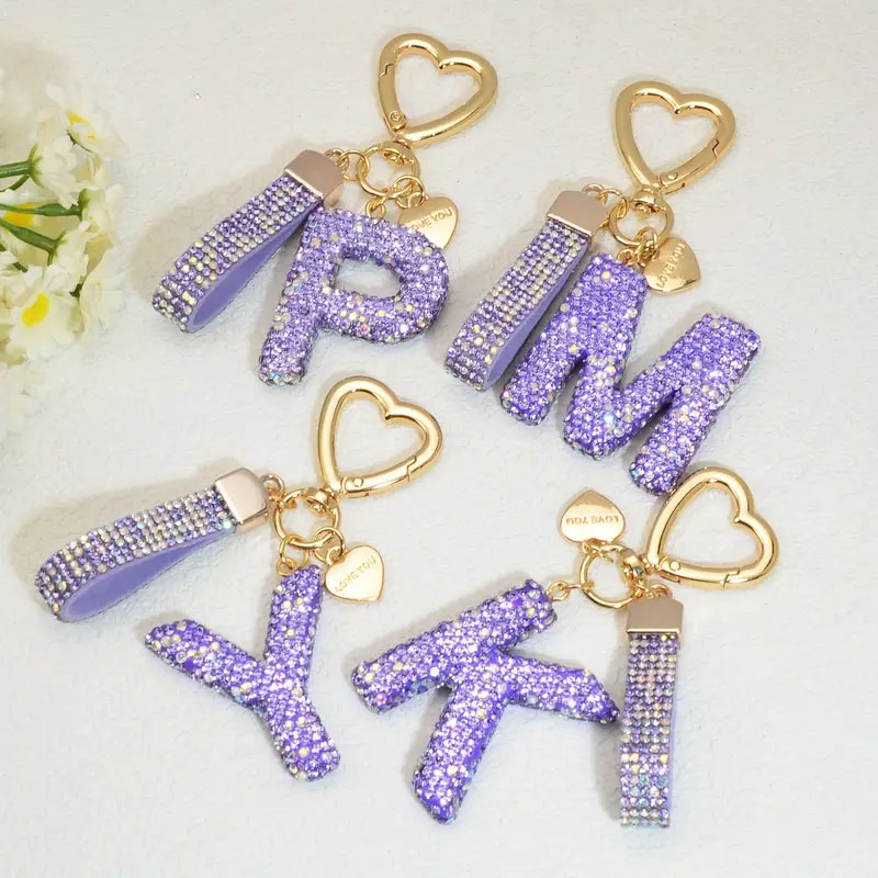 3D Cartoon Doll Keychain Metal Key Chain Shiny and Sparkling Keychains with Rhinestones