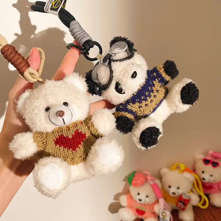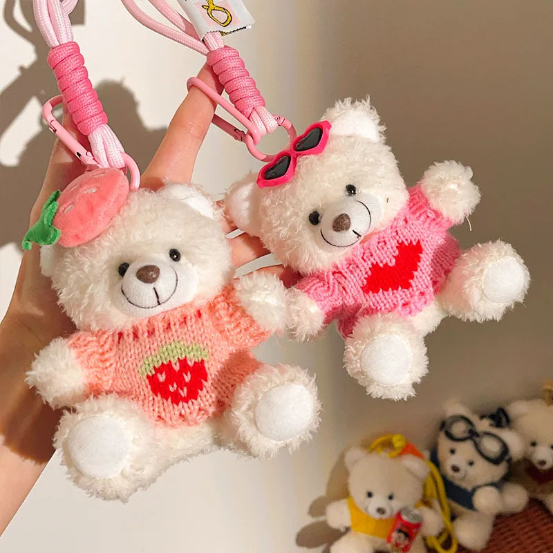 Candy Color Teddy Bear Keychain Rhinestone Bears Doll Key Chains Leather Wristlet Bag Pendant Cute Keychain