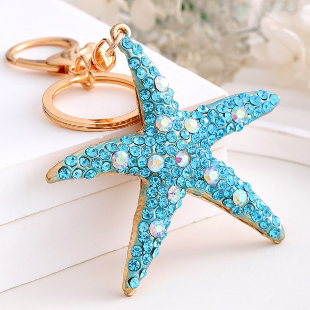 Colorful Starfish Mermaid Sea Shell Charm Metal Keychain Beach Ocean Theme Jewelry Tourist Gifts Seaside Bag Charm Accessories