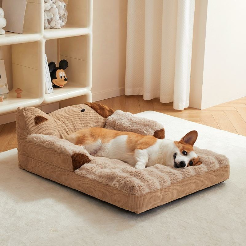 Large Comfortable Padded Cushion Dog Sofa Bed Neck Protection Warm Dog Bed With Cushions for Four Seasons Dog Bed