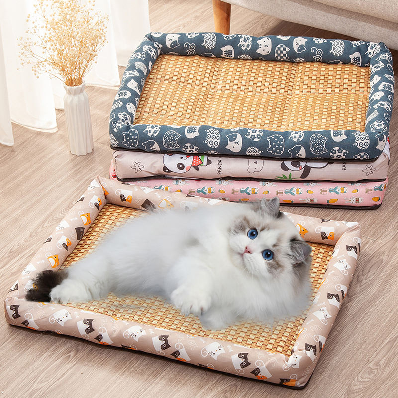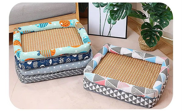 Wholesale PVC Cloth Dog Kennel Mat New Solid Ice Peas Pattern Print Summer Cool Travel Pet Nest for Four Seasons