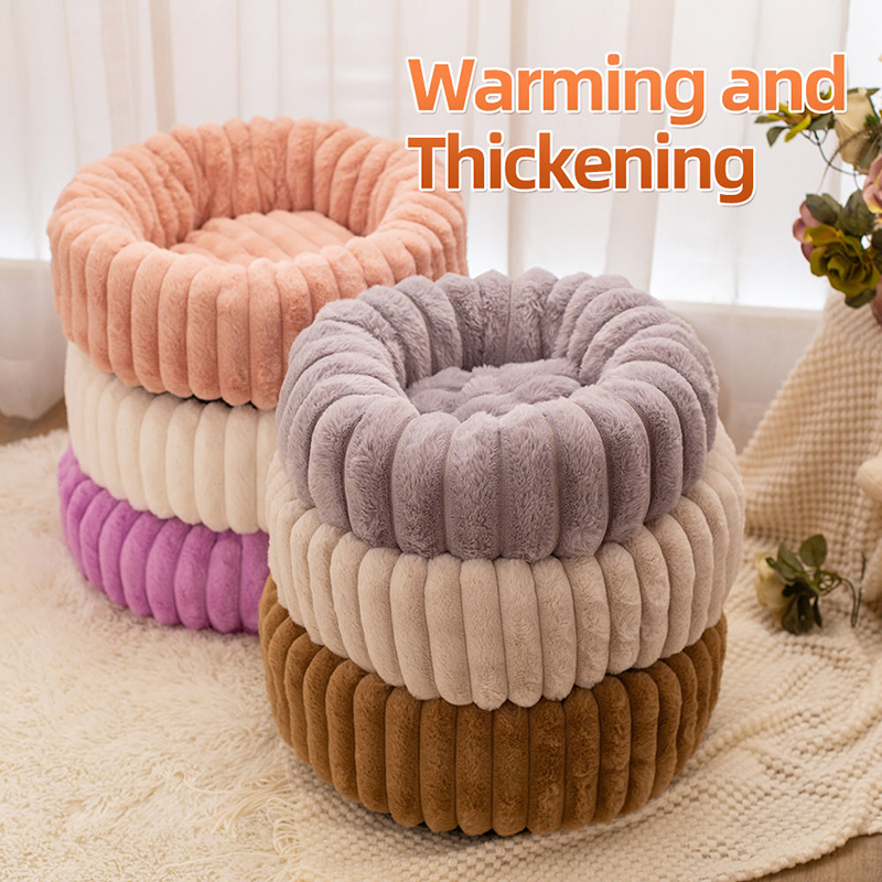 Winter Warmth New Product High Weight Straight Strip Pet Pad Rabbit Plush Cat Nest for Small Animals Long Hair Cat Beds