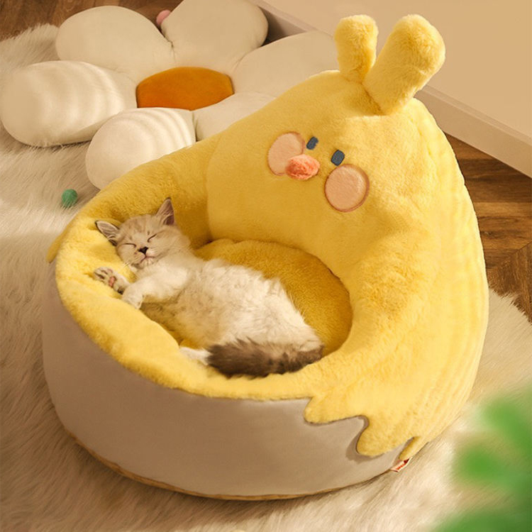 Cozy Yellow Cats Sofa Bed With Detachable Cover Comfortable Sleeping Cushions for Kittens Pet Beds