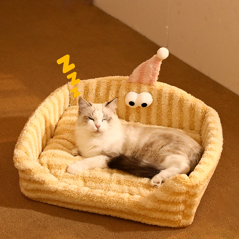Cozy Yellow Cats Sofa Bed With Detachable Cover Comfortable Sleeping Cushions for Kittens Pet Beds