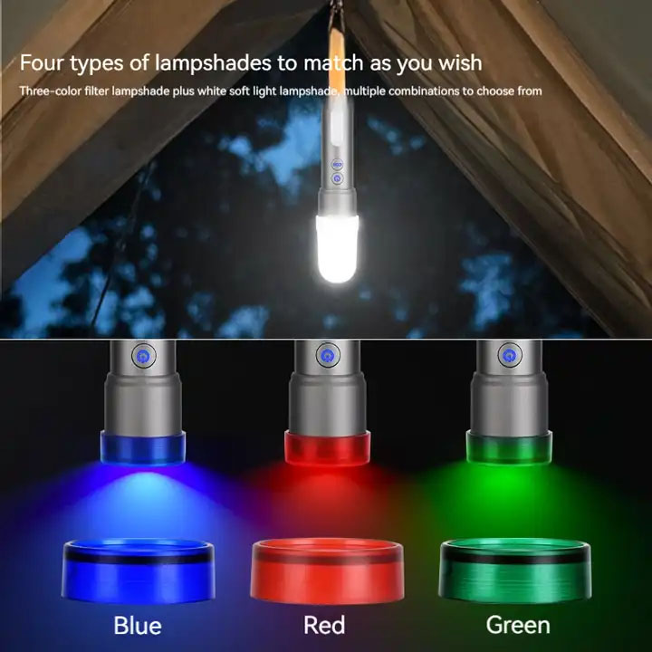 Camping Lantern Outdoor Small Portable Flashlights Type C USB Rechargeable Zoomable Torch Light With Hook Red Light
