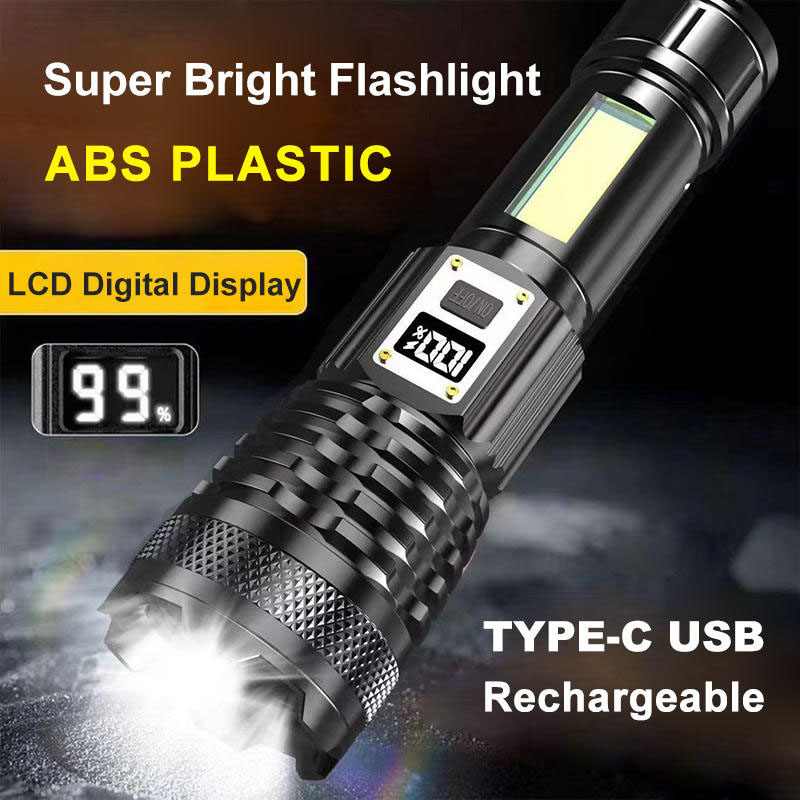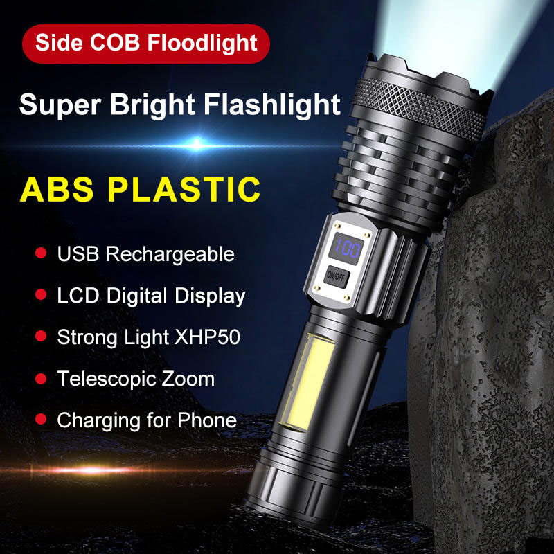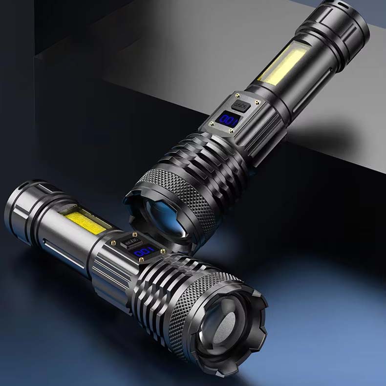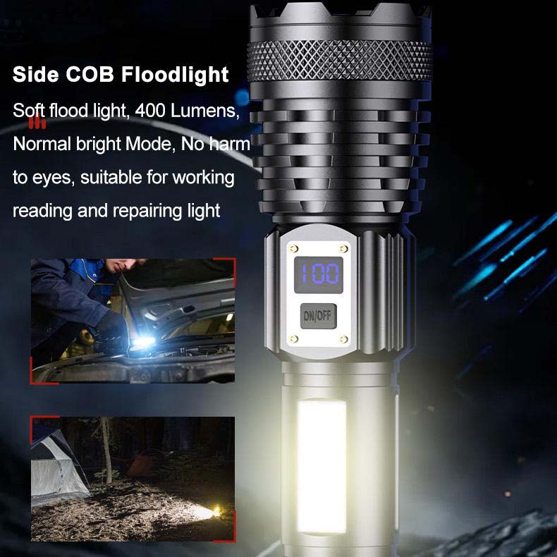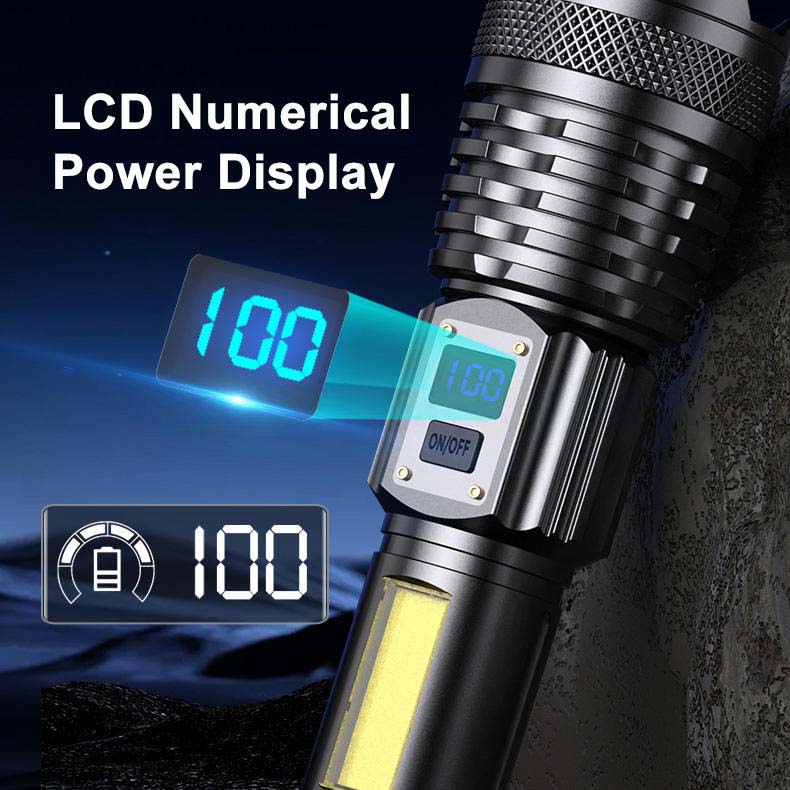 Flashlight Side COB Floodlight XHP50 LCD Digital Display Zoomable Outdoor Torch Emergency Flash Light