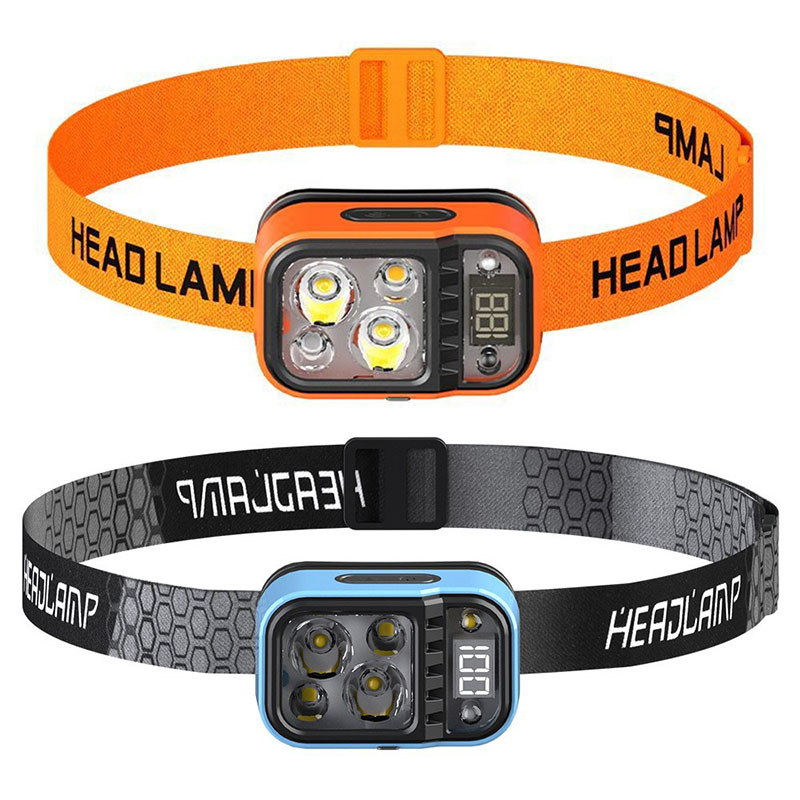Outdoor Camping Emergency Power Display Usb Rechargeable Abs Plastic Body Camping LED Torch Working Lights Headlamp