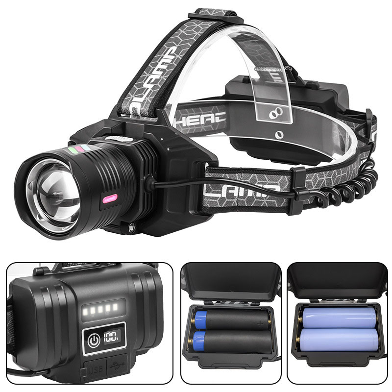 Outdoor Camping Emergency Power Display Usb Rechargeable Abs Plastic Body Camping LED Torch Working Lights Headlamp