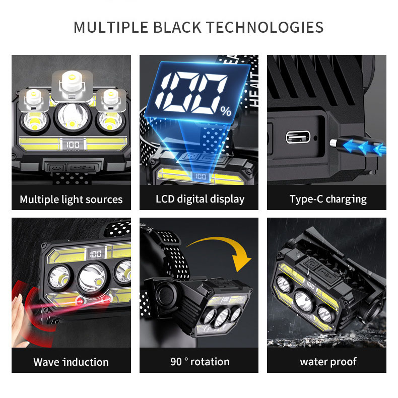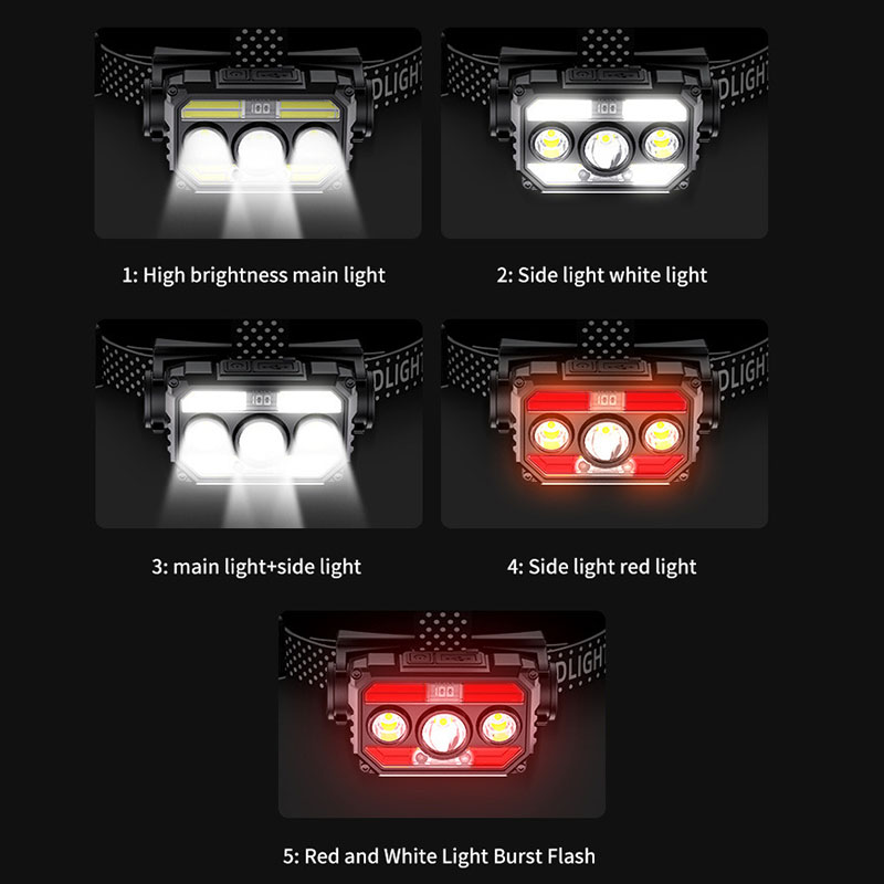 Outdoor Camping Emergency Power Display Usb Rechargeable Abs Plastic Body Camping LED Torch Working Lights Headlamp