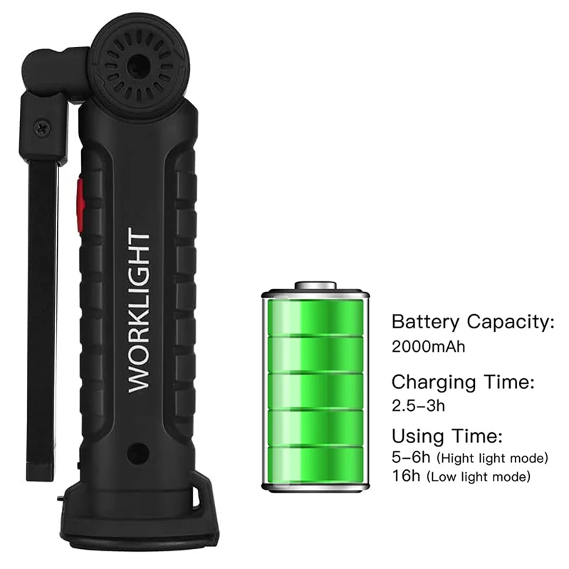 USB Rechargeable Portable LED Torch Degree Rotating COB Magnet Folding Emergency Car Repair Floodlight Work Light Lamp