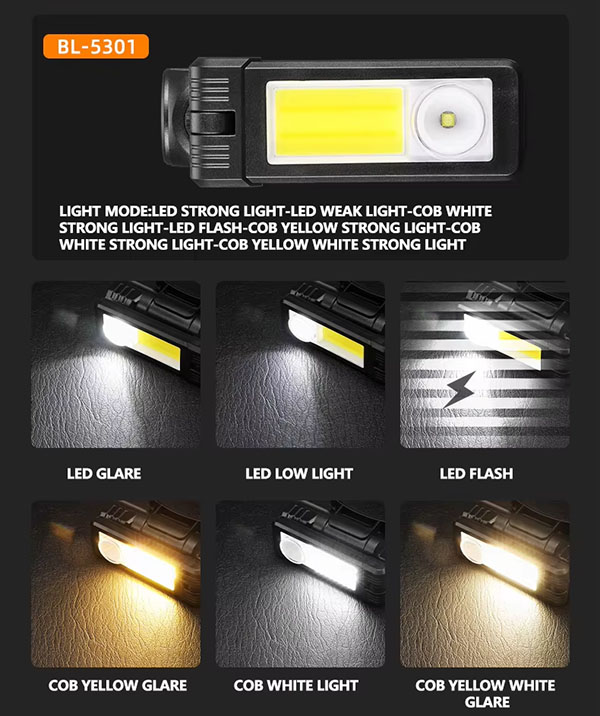 High Brightness 360° Dimmable COB LED Portable Hanging Flashlight for Garage Repair Workshop Fishing