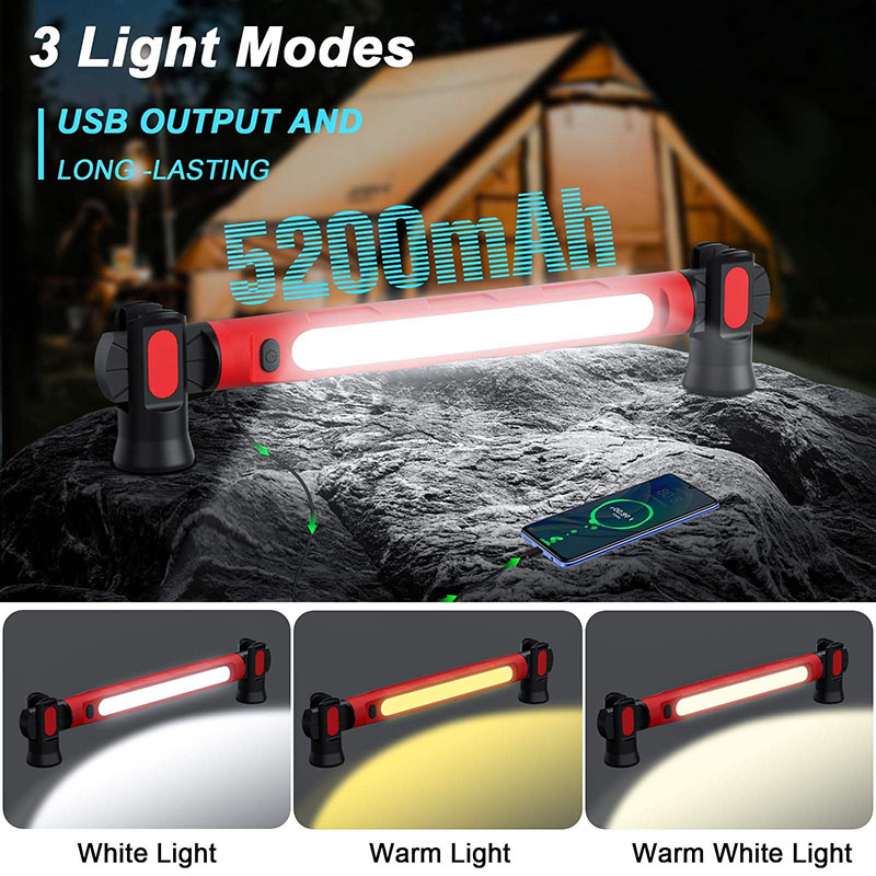 High Brightness 360° Dimmable COB LED Portable Hanging Flashlight for Garage Repair Workshop Fishing
