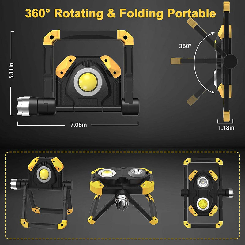 USB Rechargeable Portable LED Torch Degree Rotating COB Magnet Folding Emergency Car Repair Floodlight Work Light Lamp