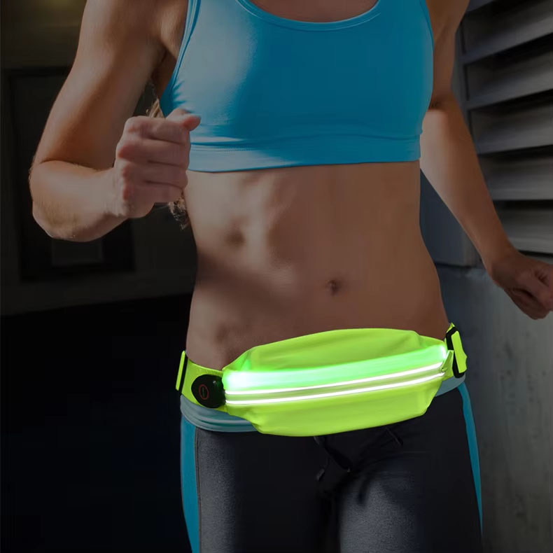 Mountaineering Safety 6 Inches Phone Pocket Anti-slip Recharge Led Waist Bag Portable Fanny Pack with Reflective Stripe