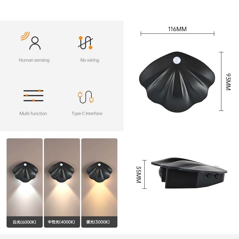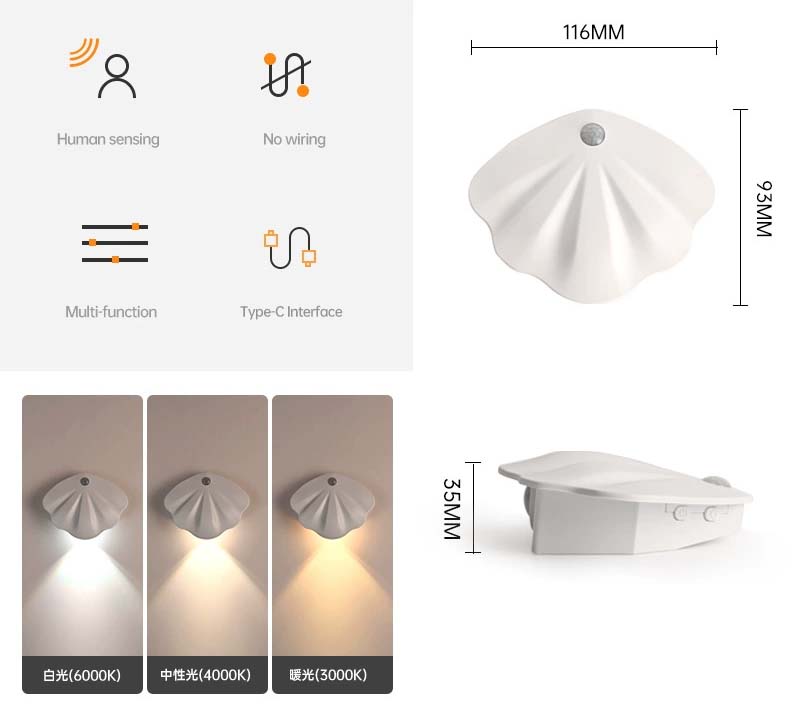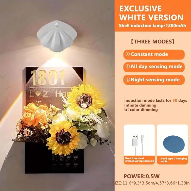 USB/Battery Powered, Adjustable Brightness Shell Lamp for Bedroom, Living Room, Hallway, Entryway & Stairs Decor