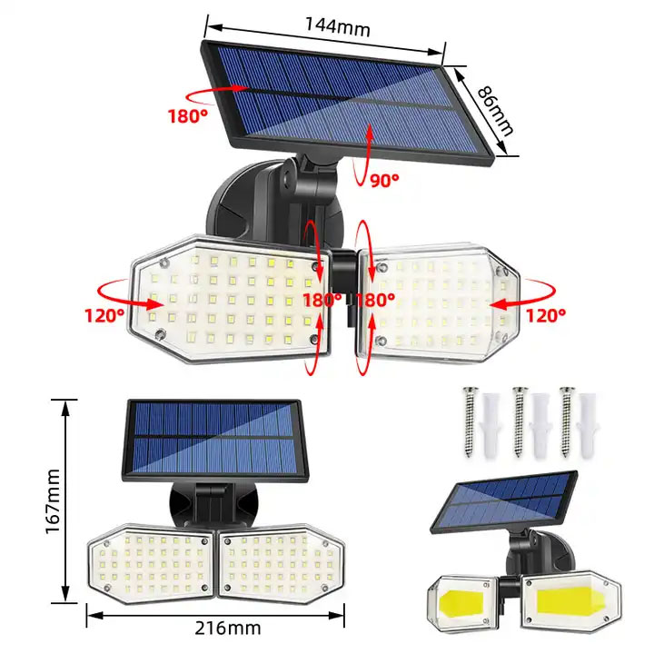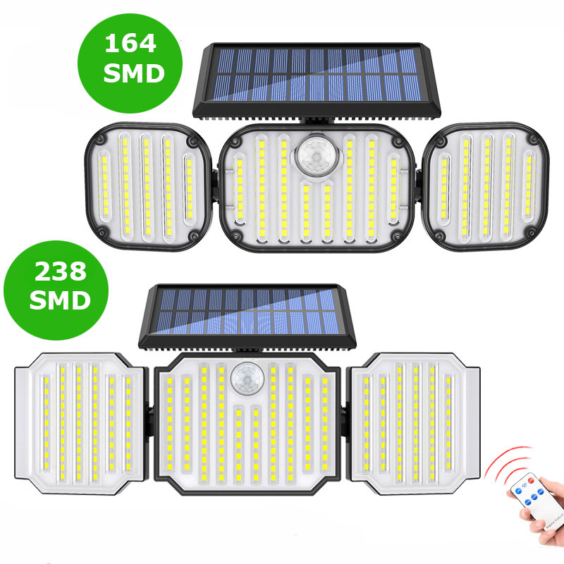 Waterproof PIR Motion Sensor Outdoor Led Garden 3 Head Security Emergency Remote Control Solar Light Led Wall Lamp