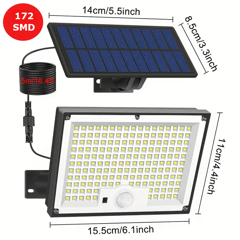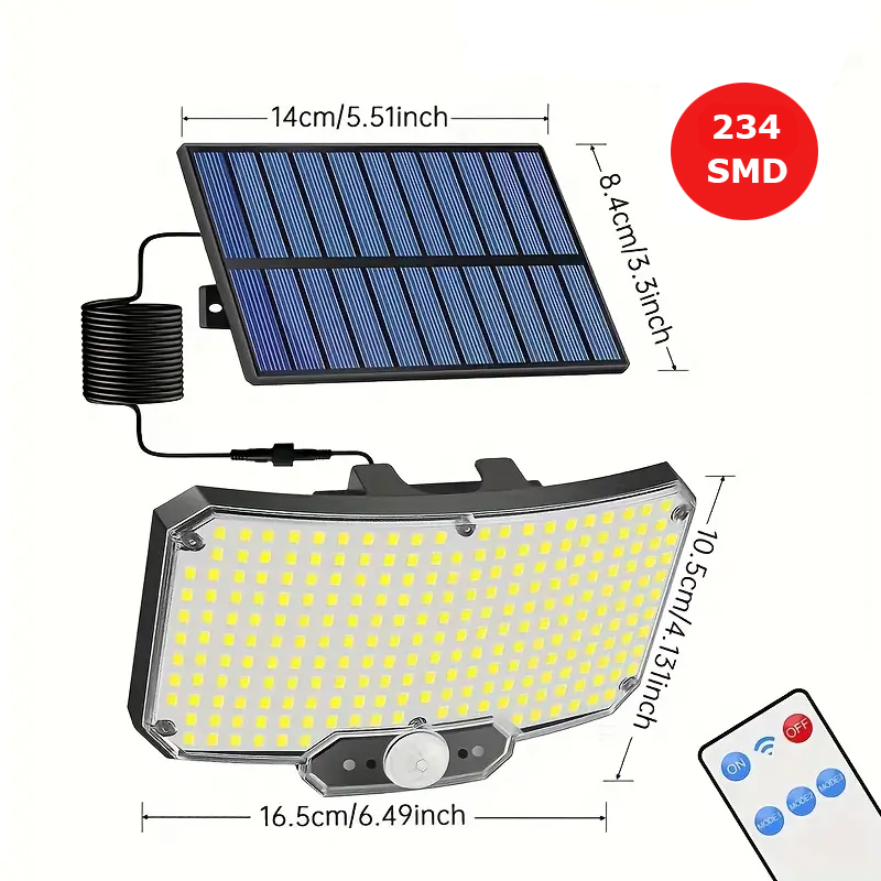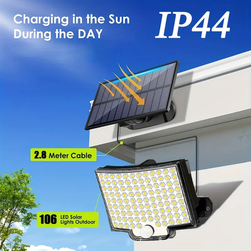 Solar-Powered Multi-Angle Motion Sensor Wall Light | IP44 Solar Outdoor Lights | Auto-Dimming & 270° Coverage for Gardens, Garages, Pathways