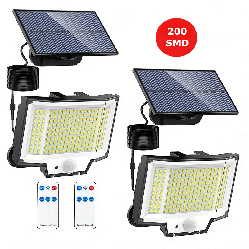 Waterproof PIR Motion Sensor Outdoor Led Garden 3 Head Security Emergency Remote Control Solar Light Led Wall Lamp