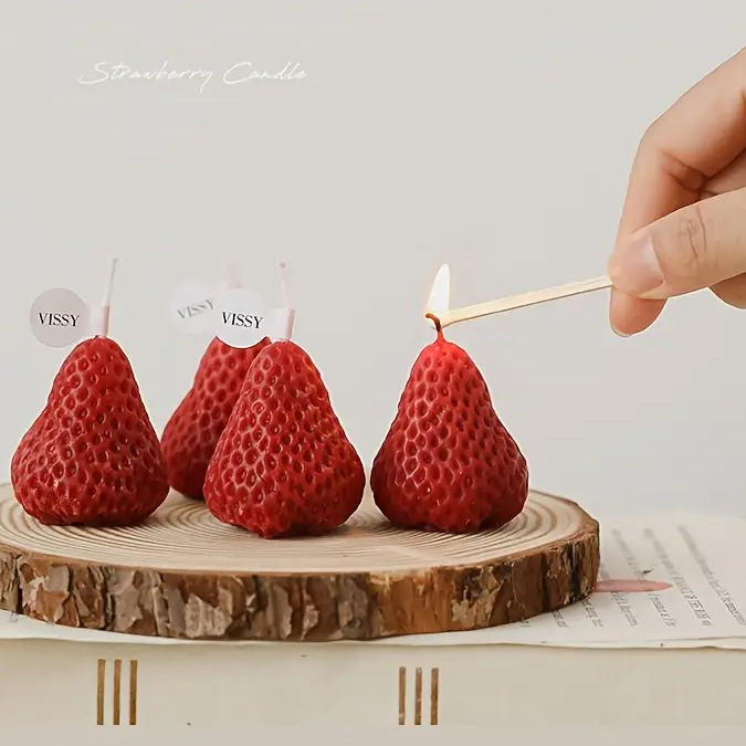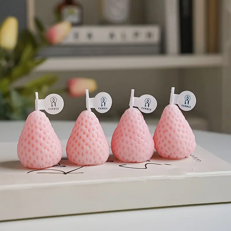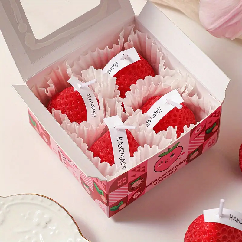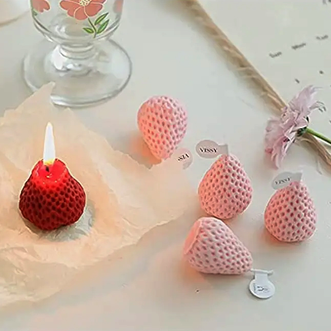Safe Material Valentine's Day Romantic Mini Red Gradient Pink White Strawberry Shaped Soy Wax Aroma Scented Candle