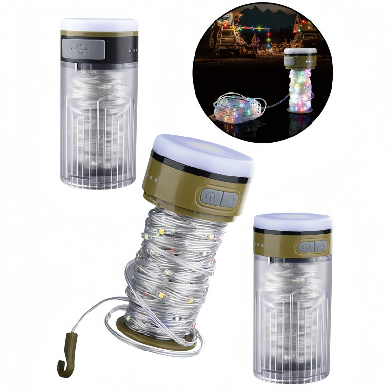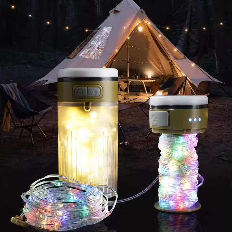 Portable Waterproof LED Camping String Light 2-in-1 Rechargeable for Hiking Courtyard Tent Decorations