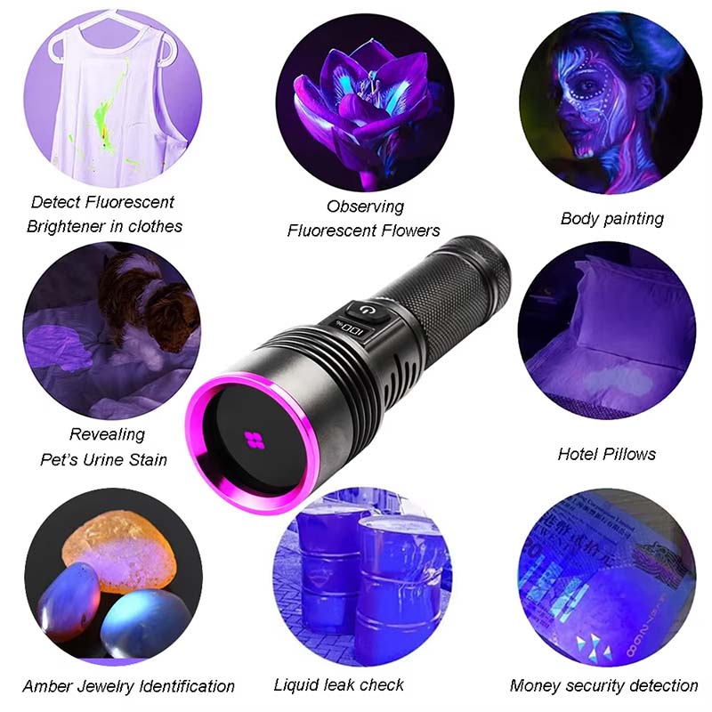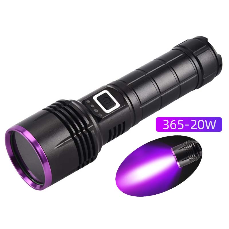 20W 365nm UV Flashlight Portable Professional Ultraviolet Black Light LED Flashlight for Resin Pet Urine Nails Money